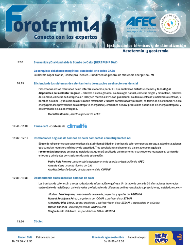 Programa del V Foro de la Bomba de Calor «Bomba de calor: un activo para la seguridad energética y la flexibilidad de la red»