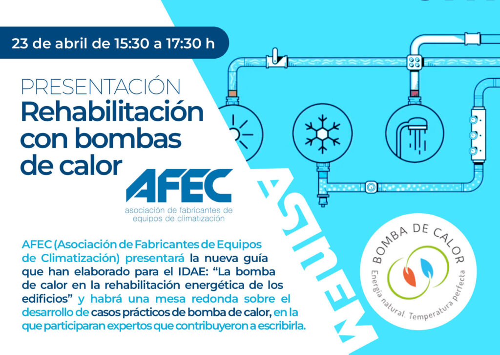 AFEC vuelve a acercar a los profesionales la guía “Bomba de calor para la rehabilitación energética de los edificios”, que elaboró para el IDAE, haciendo incidencia en aspectos importantes para las empresas instaladoras en el proceso de transición hacia una climatización más sostenible, La Asociación de Fabricantes de Equipos de Climatización (AFEC), el Instituto […]